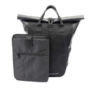 Stijlvol, stoer en waterdicht! Ruim 22 liter voor al je spullen, van boodschappen tot werkspullen, kortom een echte allround fietstas. Gemaakt van supersterk,100% waterdicht materiaal en eenvoudig van je fiets te halen. Dankzij het verstelbare bevestigingssysteem past de tas op de meeste bagagedragers. Met een uitneembare 15 inch laptop sleeve, handig ritsvak voor kleinere spullen en reflecterende strepen voor extra zichtbaarheid. Compact, praktisch en altijd klaar voor boodschappen, werk, de stad of avontuur.