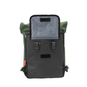 Maak je fietsrit comfortabel én duurzaam met deze fietsrugzak van gerecyclede plasticflessen. De tas is waterafstotend gecoat voor extra bescherming tegen regen, heeft een gevoerd rugpaneel, gepolsterde schouderbanden en twee handvatten. De schouderbanden berg je veilig op wanneer je de tas op je bagagedrager klikt. Met twee zijvakken voor je flesje of paraplu, een 15-inch laptopvak en een voorvak met ritssluiting blijft alles overzichtelijk georganiseerd. De waterdichte rits beschermt je spullen tegen regen en vocht. Compact, stevig en duurzaam, de ideale tas voor werk, school of om boodschappen mee te doen.