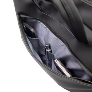 Bescherm je laptop in stijl met deze werktas van luxe aanvoelend PU-leer, geschikt voor laptops tot max. 17 inch. Slimme opbergvakken bieden ruimte voor accessoires zoals opladers, kabels en documenten, zodat alles georganiseerd blijft. Lichtgewicht, met trolleyband en voorzien van stevige handvatten en een verstelbare schouderriem, biedt de tas optimaal draagcomfort. De voering, gemaakt van gerecyclede plastic flessen, maakt hem duurzaam en milieubewust. Ideaal voor wie stijl, functionaliteit en bescherming zoekt in één tas.