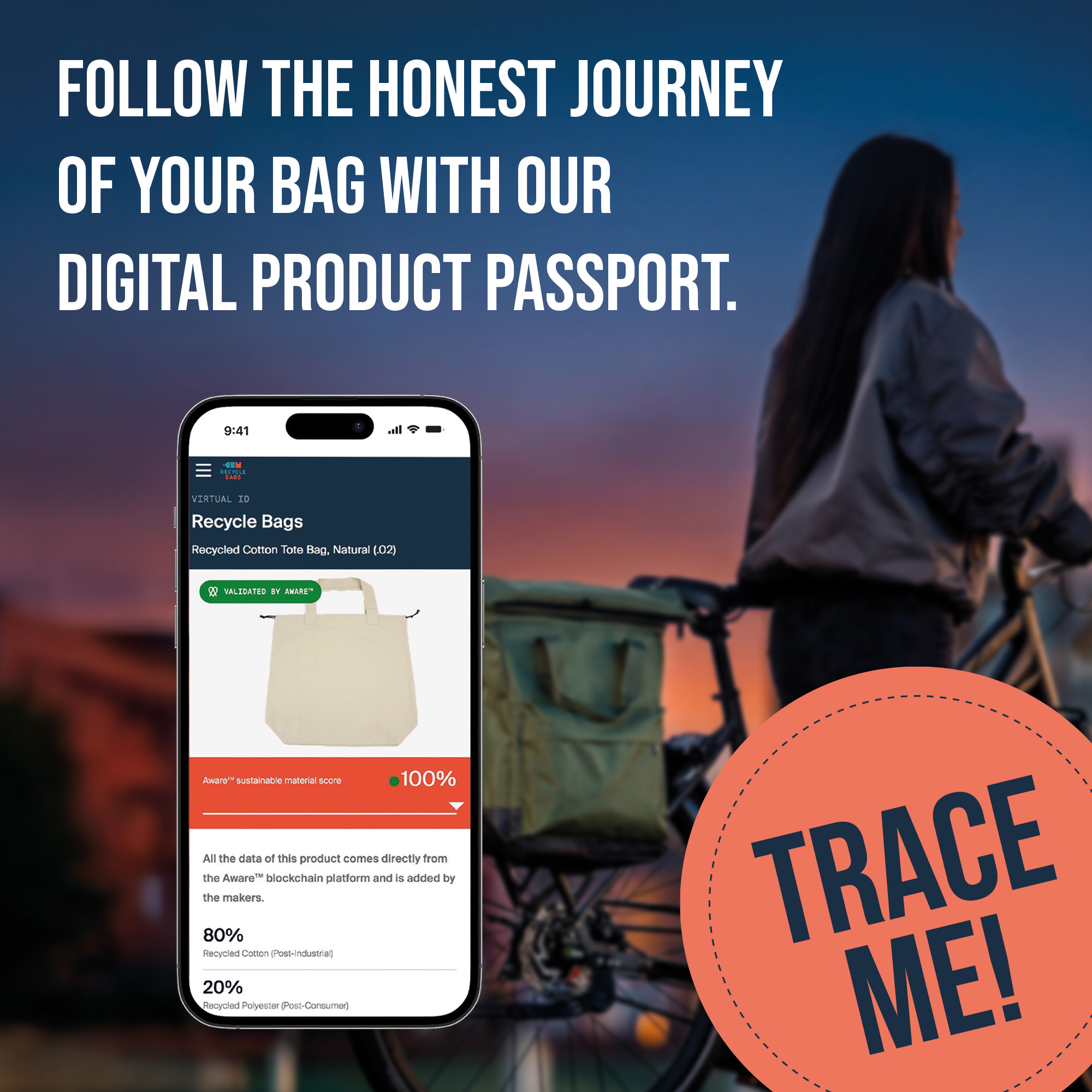 Een bewuste keuze begint met inzicht. Begin dit jaar hebben wij “Trace Me!” geïntroduceerd: ons Digitaal Product Paspoort dat transparantie brengt in de herkomst, materialen en impact van onze tassen. Zo ondersteunen wij distributeurs bij het maken van verantwoorde inkoopbeslissingen én het bieden van aantoonbare meerwaarde aan hun klanten.